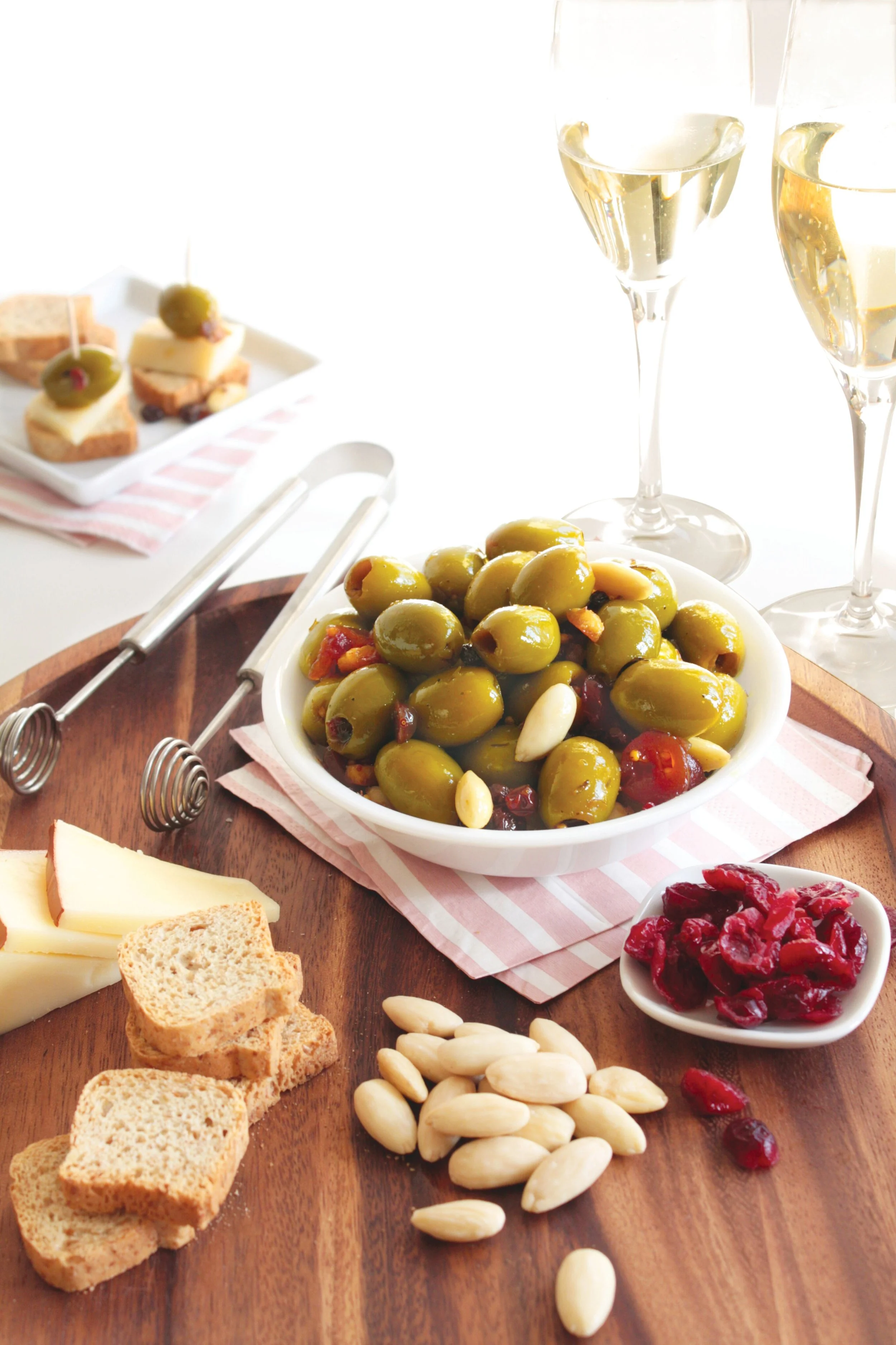 It’s savory, sweet and scrumptious to eat. Green olives marinated in a sweet brine and tossed with dried cranberries, raisins and almonds make the perfect accompaniment to cheese and charcuterie. We also love this mix roasted with butternut squash and Brussels sprouts.